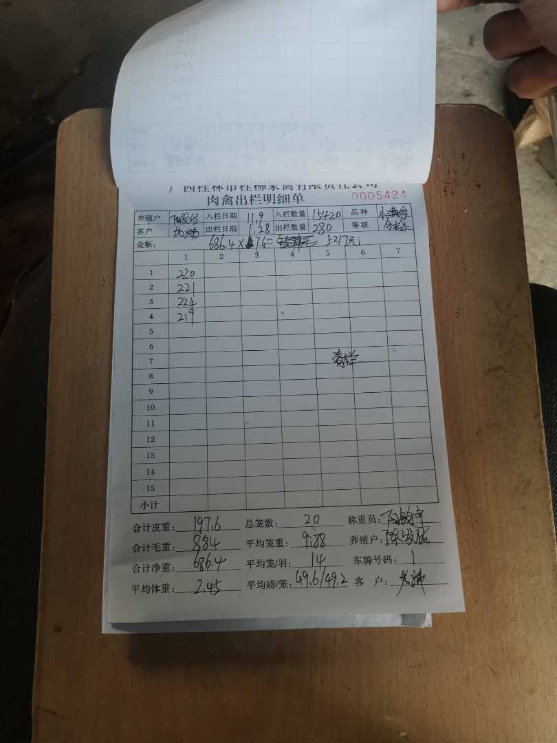 养殖户_陈发佑全州肉鸡小三黄221109 1109 7批_1674895759804.JPEG |