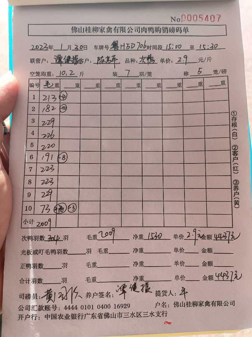 养殖户_梁杰锋开平肉鸭H2207060105 1220 5批_1675122938424.JPEG |