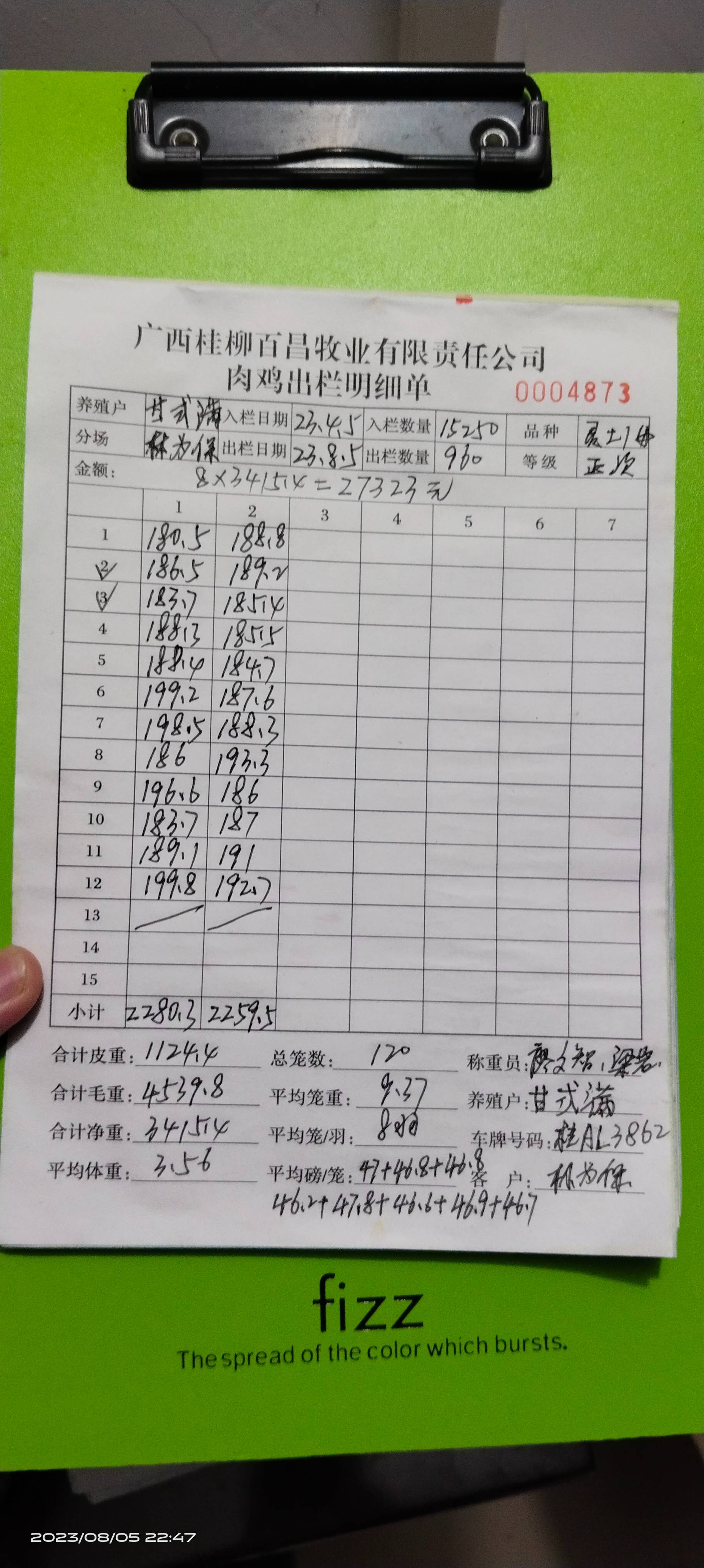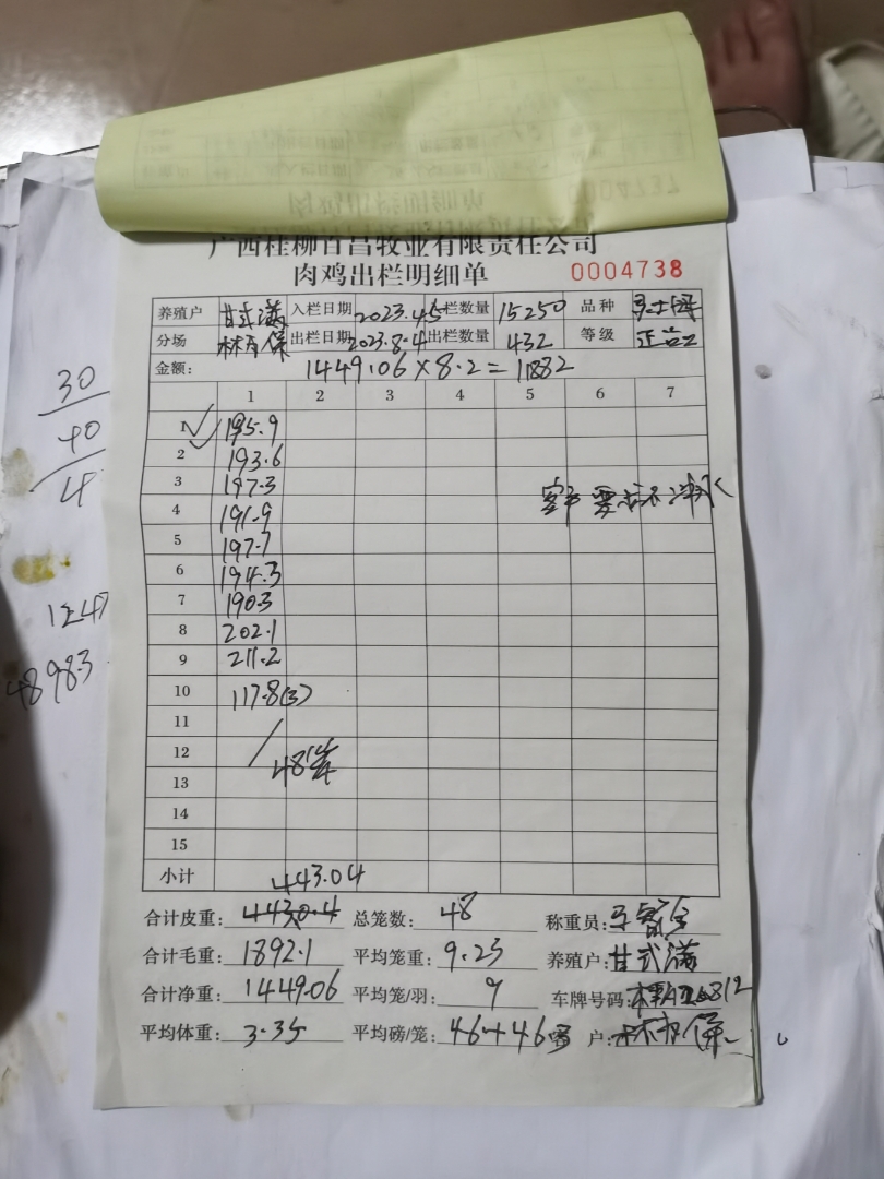 养殖户_冯金学柳州肉鸡灵土1.8母230435 0427 8批_1691250071814.JPEG |