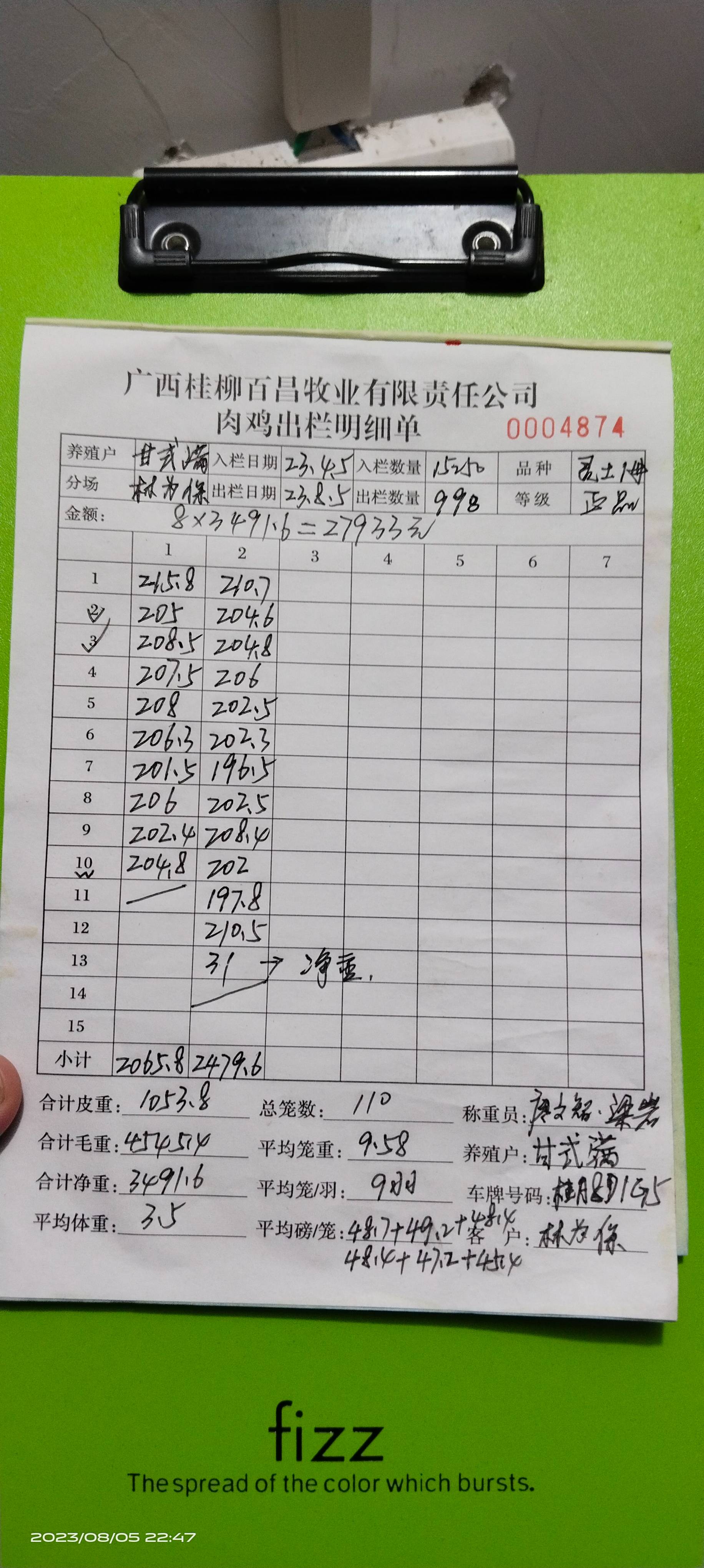 养殖户_冯金学柳州肉鸡灵土1.8母230435 0427 8批_1691250298003.JPEG |
