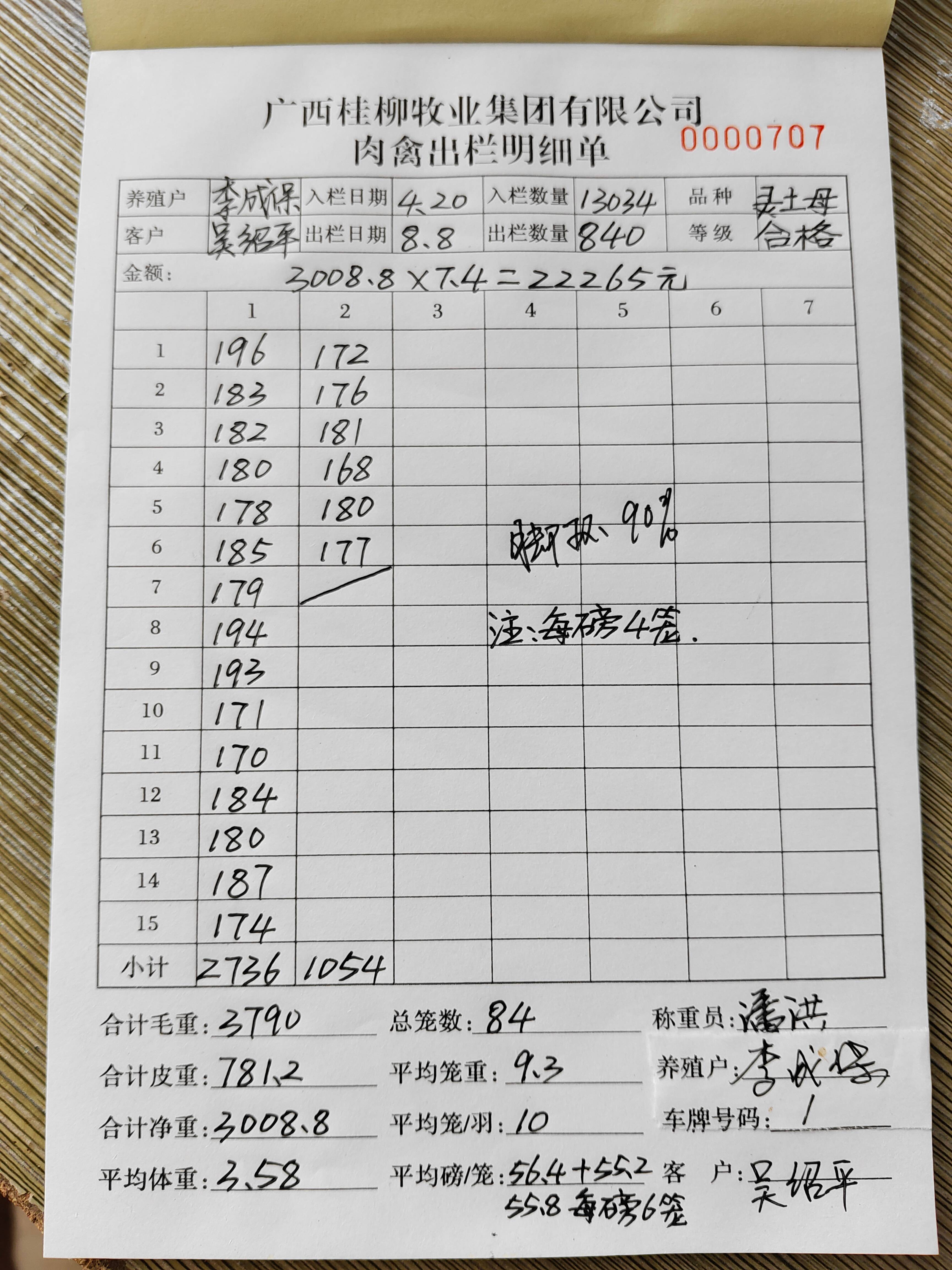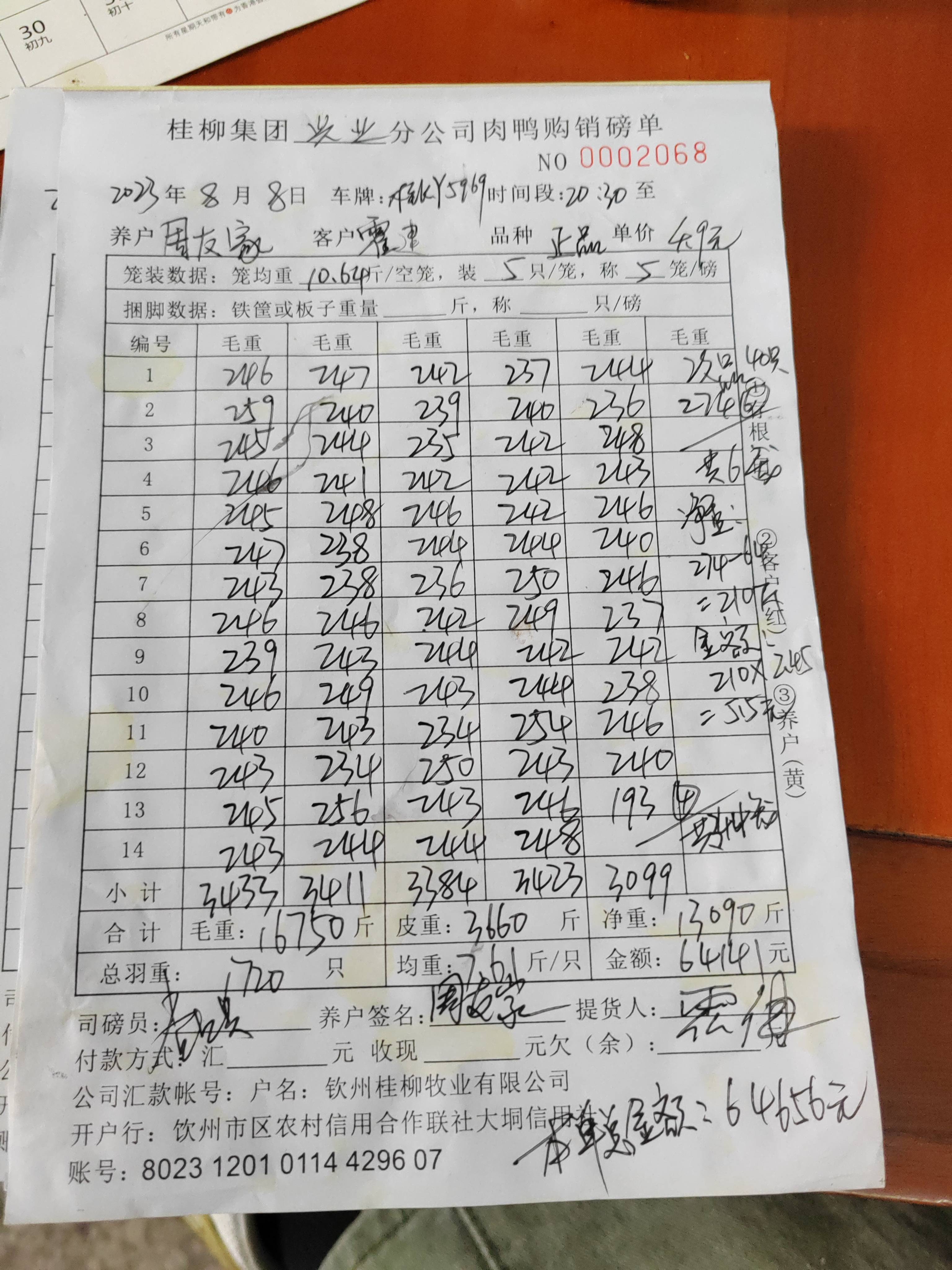 养殖户_韦少华桂林肉鸡土二公230321-02 0607 10批_1691590711146.JPEG |