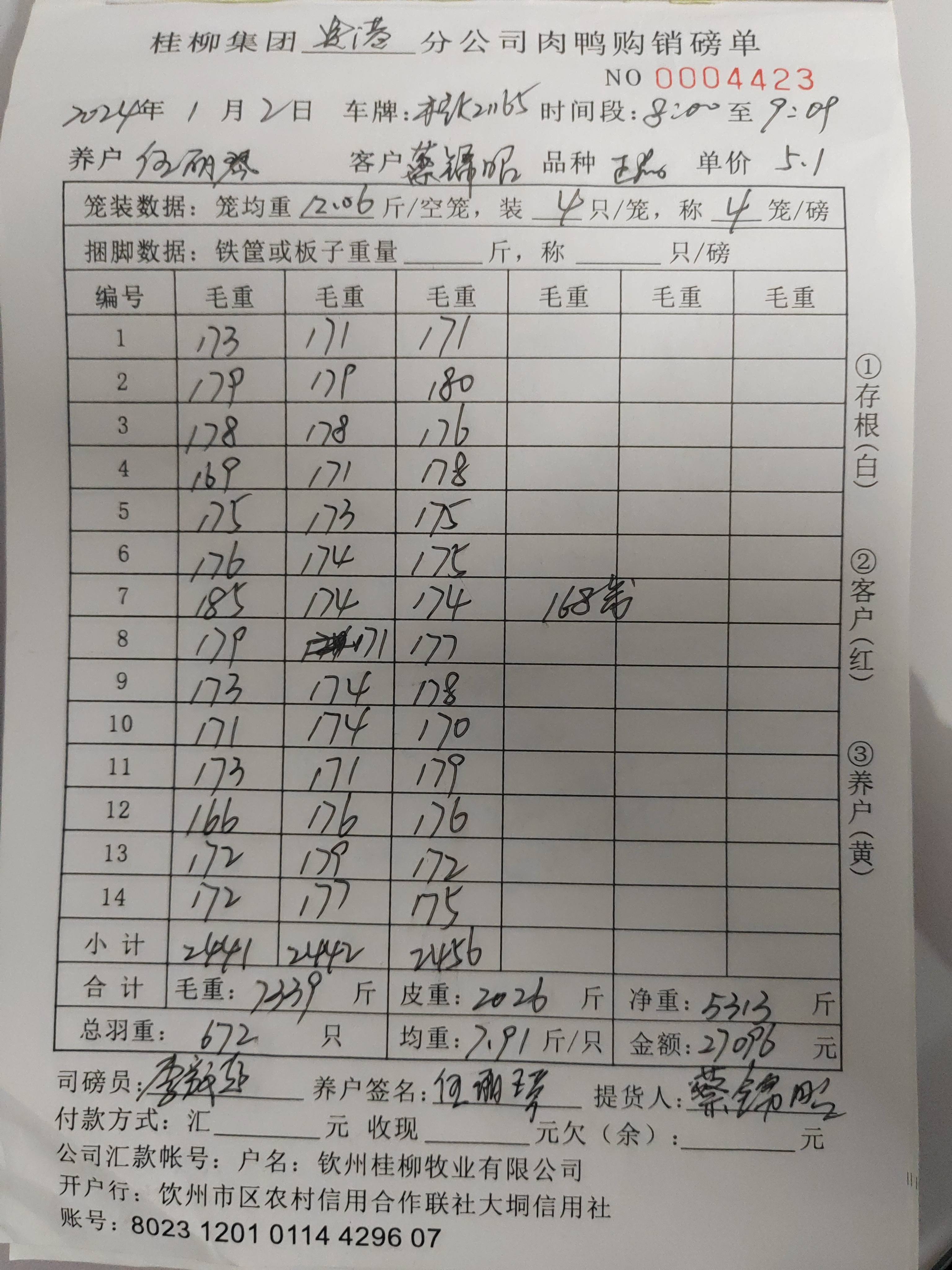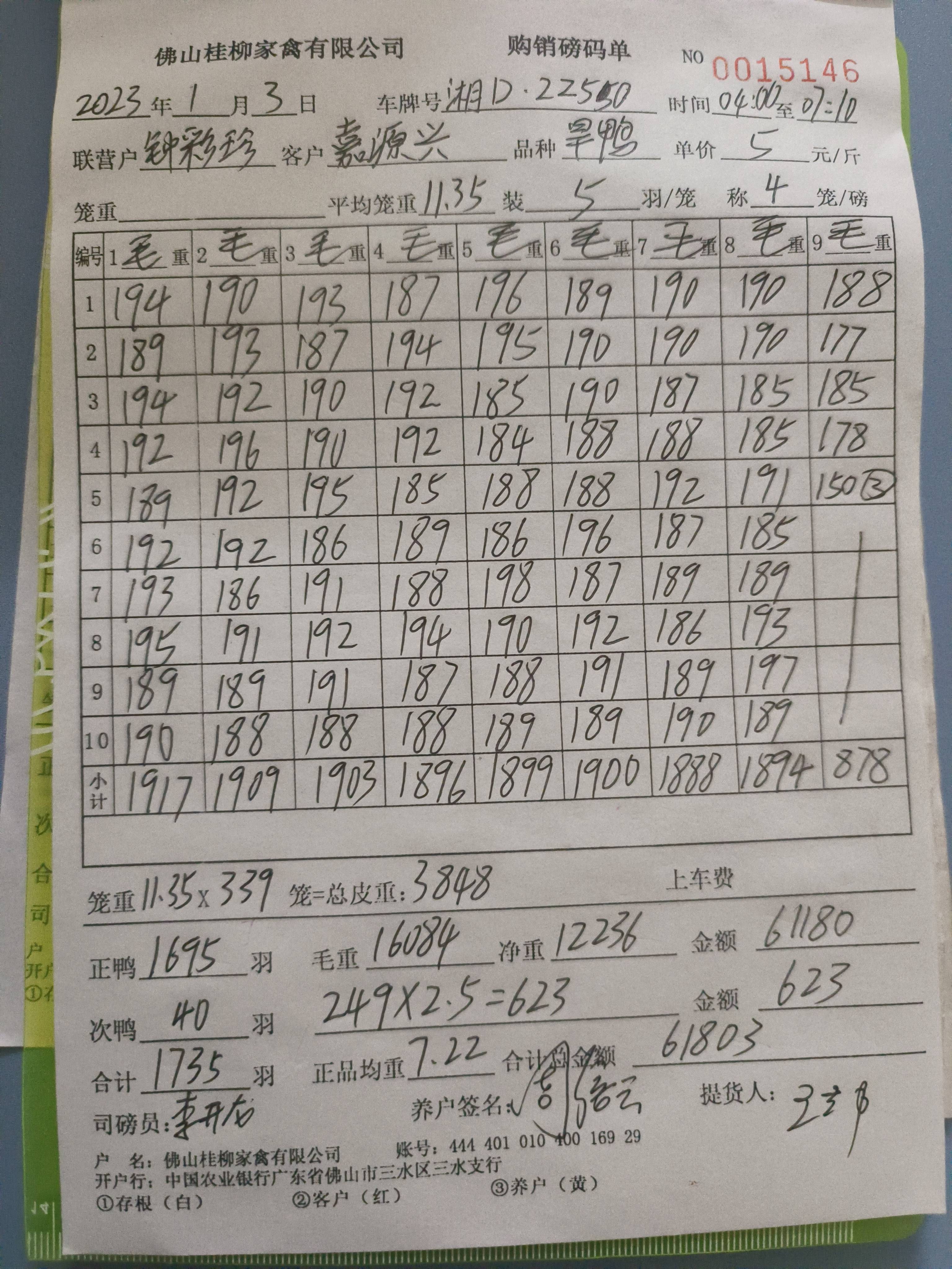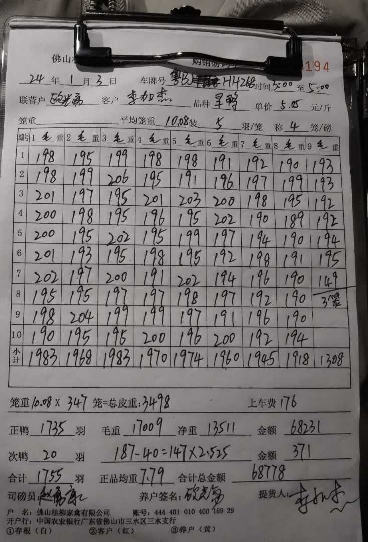 养殖户_廖翠霞河源肉鸭H23090502 11201号棚 2批_1704236277150.JPEG |