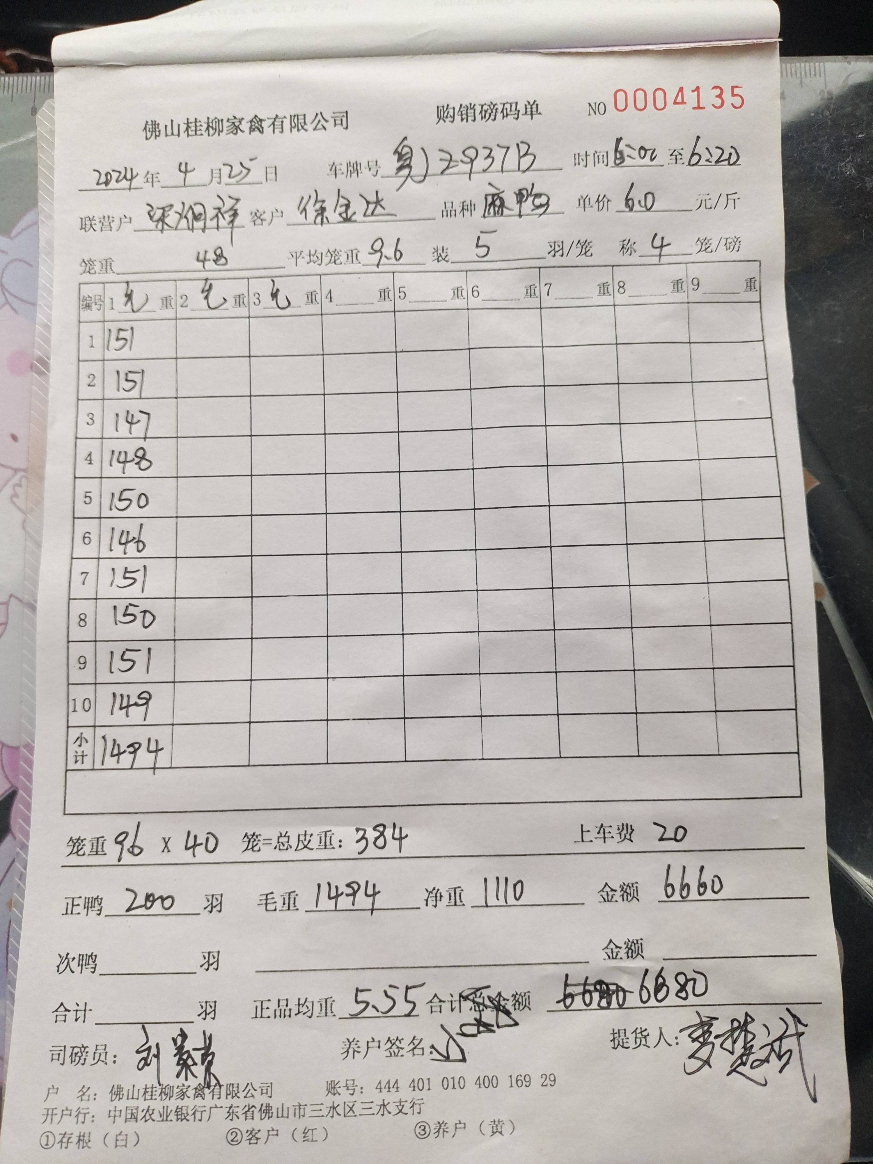 养殖户_廖结好云浮肉鸭H23080204 03111号棚 4批_1714055754009.JPEG |