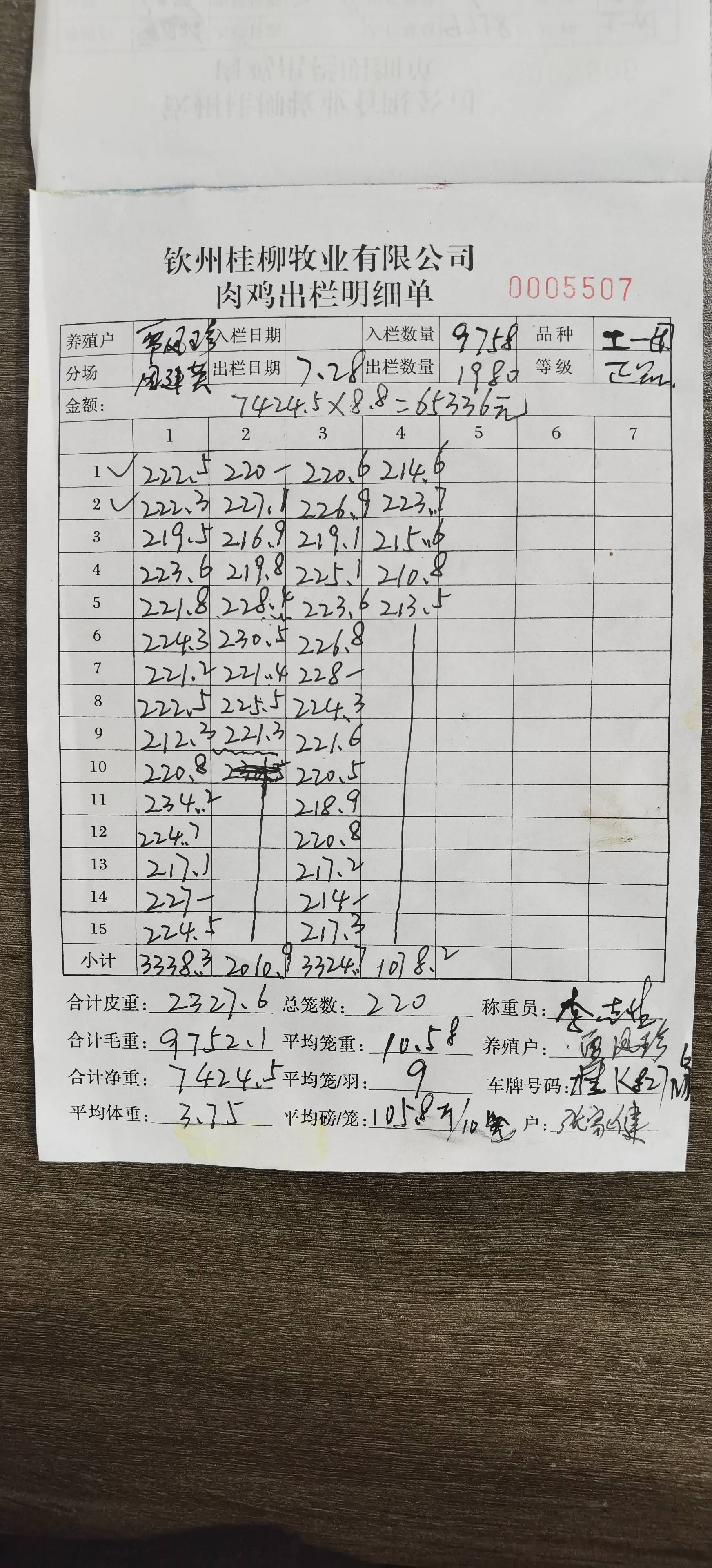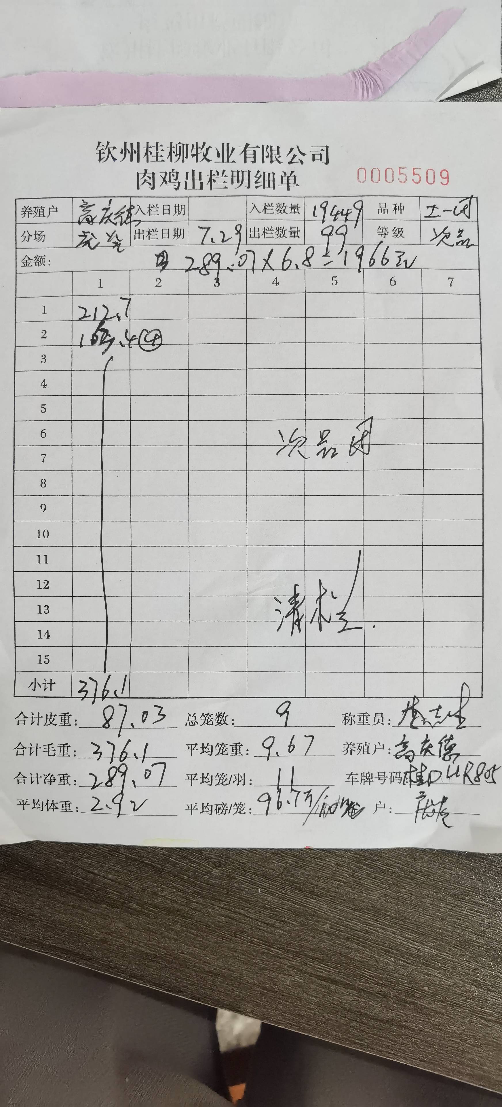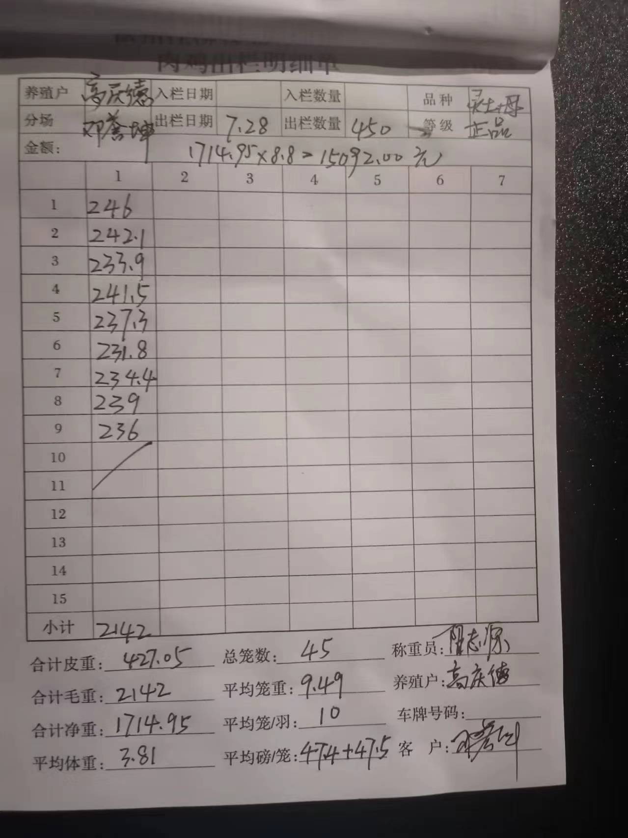 养殖户_钟金龙湛江骡肉鸭23110507 0515 1号棚 7批_1722185884880.JPEG |