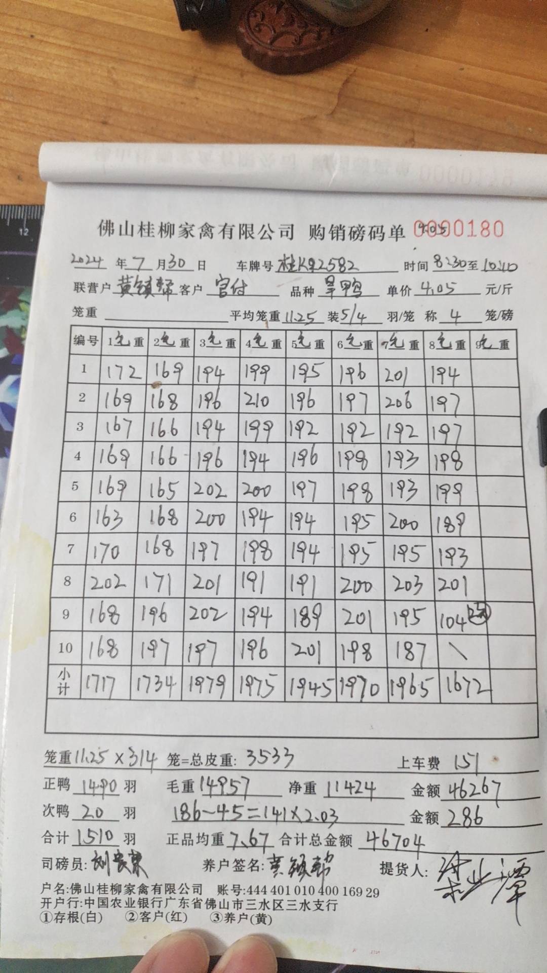 养殖户_廖水祥云浮肉鸭H24030110 0611 1号棚 10批_1722345331635.JPEG |